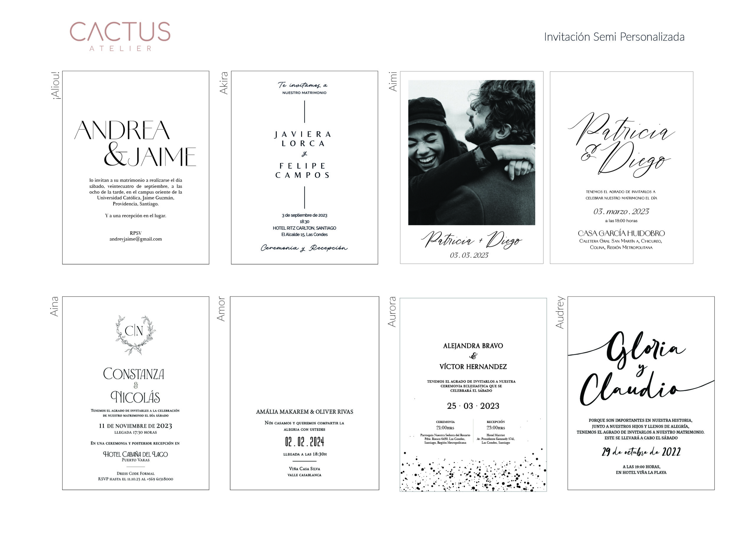 – Se puede personalizar: tipo de papel y color de la fuente; método de impresión: digital o foil; Su redacción e información en toda la tarjeta; color del sobre de nuestra paleta de colores